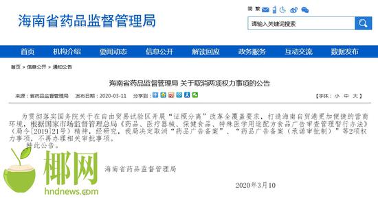海南省药品监督管理局表示,取消这两项权力事项,旨在打造海南自贸港更加便捷的营商环境。