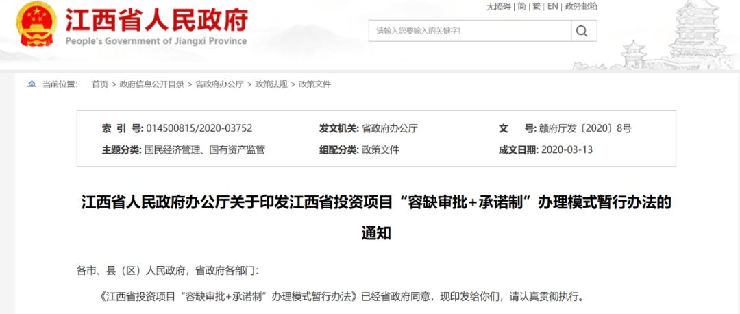 创新举措很重要,这不,针对投资项目,我省推出“容缺审批+承诺制”办理模式,旨在缩短审批时间,提高审批效率,加快推进项目前期工作,全力打造“四最”环境。 ![]() 01 什么是“容缺审批+承诺制”? “容缺审批+承诺制”办理模式指项目单位申请办理审批事项时,在具备主审材料但暂时缺少可容缺报审材料(以下简称容缺材料)的情形下,经项目单位自愿申请、书面承诺按照规定补齐,审批部门可以先行办理。 容缺材料指主审材料以外,依法依规需要的材料,包括但不限于主体证明材料、授权委托书、资格证明、资质证明、意愿证明,或者其他辅助材料等。 02 什么时候应该补齐容缺材料? 项目单位应当于项目开工建设之前补齐容缺材料。未补齐容缺材料且取得全部必须的正式审批文件(证照),项目不得开工建设。 审批部门对补齐的容缺材料审查后,未对初审结果产生实质性影响的,应当于2个工作日内将初审意见转换为正式审批文件(证照);对初审结果产生实质性影响的,初审意见应当作废,并按照该事项规定重新办理审批手续。 审批部门应当在全省投资项目在线审批监管平台和业务办理平台上办理容缺审批业务。受理后开始计算审批时间,容缺审批出具正式审批文件(证照)或者初审意见后即作挂起处理,补齐容缺材料或者将初审意见转换为正式审批文件(证照)后予以办结。 03 什么部门负责落实? 各级发展改革部门负责牵头统筹投资项目“容缺审批+承诺制”推进工作。各级政务服务管理部门负责督促监督本级审批部门开展“容缺审批+承诺制”业务办理,并在本级政务服务大厅和政务服务网公布相关办法。 各级审批部门负责开展“容缺审批+承诺制”业务办理,并在政务服务网公开审批事项的“容缺审批+承诺制”办事指南。 来源:江西省人民政府网站 编辑:万仁辉 编审:刘勇 编校:张玉珍 ![]() |