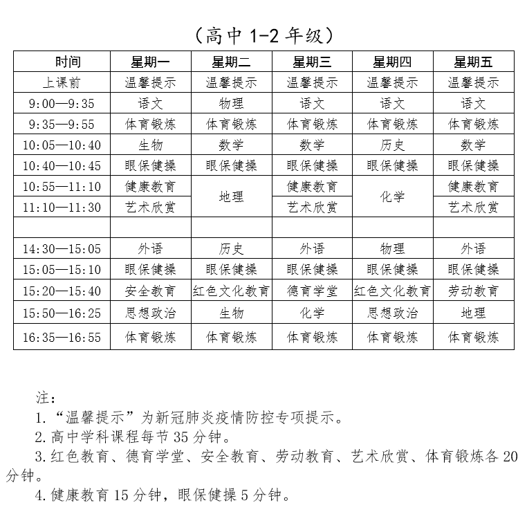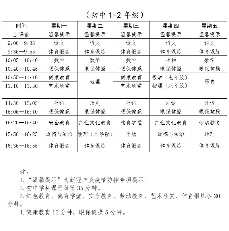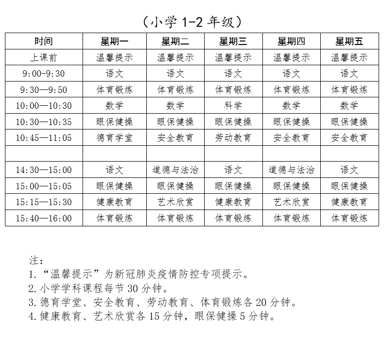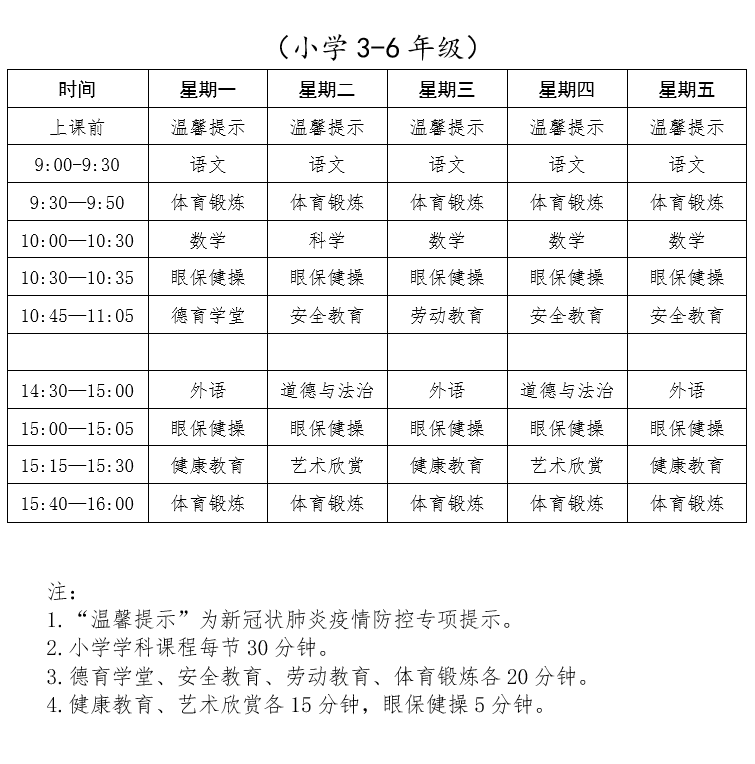 请收藏!下周开始线上教学课表有变