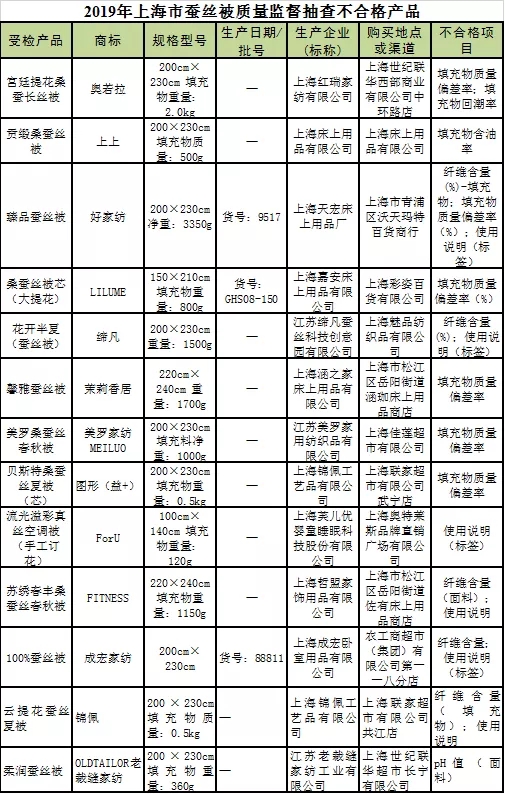 原标题:[提示]沪抽检80批次蚕丝被,这13批次不合格 市市场监管局说,此次共抽查80个本市在售的蚕丝被品牌。经检验,“OLDTAILOR老裁缝家纺”柔润蚕丝被、“好家纺”臻品蚕丝被等13批次产品不合格。不合格的主要项目包括:纤维成分含量、填充物质量偏差率、含油率以及标签信息等。详见↓ ![]() 本次监督抽查依据相关国家标准及相关标准要求,对产品的甲醛含量(胎套)、pH值(填充物及胎套)、可分解致癌芳香胺染料(胎套)、耐水色牢度(胎套)、耐酸、碱汗渍色牢度(胎套)、耐摩擦(干、湿)色牢度(胎套)、耐皂洗色牢度(胎套)、面、里料及填充物纤维成分含量、填充物品质、填充物含油率、填充物质量偏差率、填充物回潮率、使用说明(标签)进行了检测。 1 2 3 4 下一页