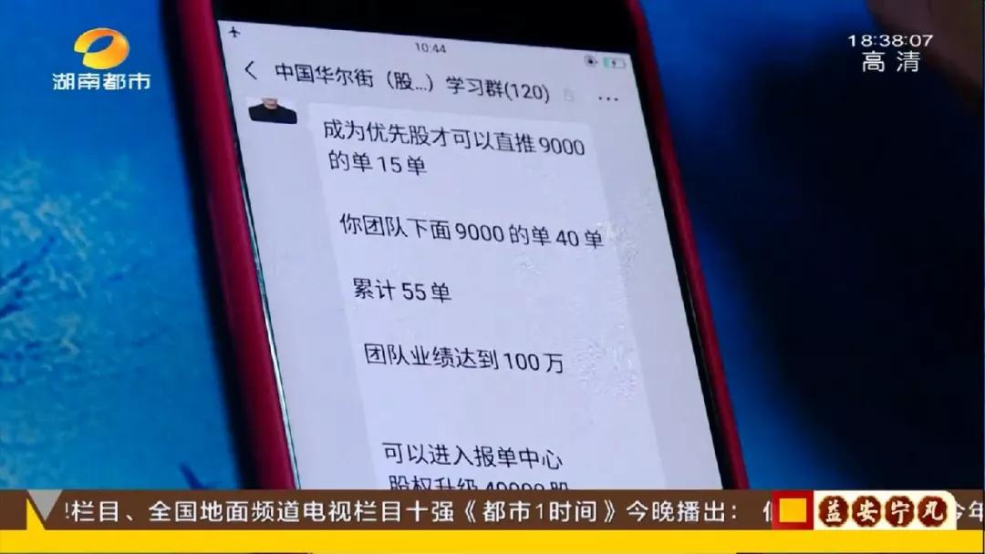 “投5000元买4999股原始股, 有望获得100万元上市分红” 小心了,这是网络传销的新套路! 12月17日,长沙岳麓警方通报,近期他们侦破“华尔街之路”微信虚假项目诈骗案,在全国10个省13个地市抓获14名犯罪嫌疑人,并查出该案件已经涉案30万人。 -01- 网友拉人入微信群 大肆宣传“华尔街之路”投资项目 5000元购4999股原始股 百万上市分红诱人入局 ![]() ![]() ![]() 居住在长沙岳麓区桃花村的市民石先生今年10月,被网上认识的朋友拉入一个名为“华尔街之路”的微信群,群内有很多人以授课的方式向他宣传“华尔街之路”项目,称投5000元买4999股原始股,等2020年上市之后就可以获得百万分红,面对这样诱人的高额回报,石先生连同家人一起付款了1.5万元钱,获得所谓的股权。 后续接触中,石先生发现该项目模式与普通传销模式相似,需要不断发展下线才能收回成本。 ![]() ![]() ![]() ![]() ![]() 将所谓的项目分享给2人收1万元,自己拿5500元,这种模式就像传销一样,靠拉人头获利,发现被骗的石某选择报警。 ![]() ![]() ![]() ![]() ![]() ![]() ![]() 长沙岳麓警方立案展开调查发现,2018年11月左右,犯罪嫌疑人林某以“华尔街国际实业集团有限公司”为主公司,虚构国家2.0扶贫政策,在微信中推广“华尔街”之路项目。 ![]() -02- 虚构股权、分红等多重“奖励” 掩盖返利资金真实来源 国内主要头目微信发展下线 非法获利51万余元 嫌疑女子王某50岁,内蒙古乌兰浩特人,直接接受犯罪嫌疑人林某领导,王某属于“股东局”成员。 ![]() ![]() ![]() 长沙岳麓公安分局 办案民警 刘警官:她发展的下线,到长沙岳麓区差不多是第十级了,一级下来,她之前参加过其他传销组织,她都是和最上面的人联系,所以他们是赚钱的,下面亏钱。 ![]() 面对警方,王某交代,她通过微信群等渠道总计发展下线17000多人,非法获利51万余元,其余13名犯罪嫌疑人均不同程度获利。 ![]() ![]() 今年11月,岳麓警方在全国10个省13个地市组织对该案收网,抓获涉案诈骗的犯罪嫌疑人王某、涉嫌组织领导传销活动的鲍某等14名嫌疑人。目前,犯罪嫌疑人已被长沙岳麓区检察院批准逮捕,警方仍在对林某展开布控工作,案件仍在进一步侦办当中。 ![]() ![]() 长沙岳麓公安分局 办案民警 刘警官:发起人林某,不在境内,这个团伙的特点,与传统传销模式有一定的不同,它不像传销那么暴力,但人数比传销更广,网络发展的方式,更快。 ![]() ![]() 警方提醒:无论是境内或境外上市公司,均不得将原始股向普通市民进行销售,凡未经过中国证监会核准,而采取广告、公告、短信等公开方式劝诱向社会不特定对象销售股票的,属于非法证券活动,市民遇到推销股票或公开劝诱时,要擦亮眼睛,提高警惕,一旦发自己的合法权益受到侵害,及时向公安机关报案。 ![]() |