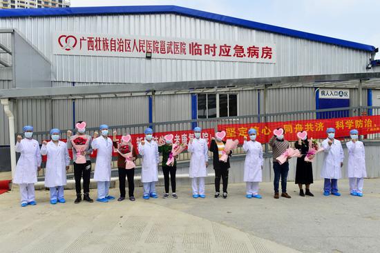 ![]() ![]() 南宁云—南宁新闻网讯(记者 庞丽娜 通讯员 吕新新 李安 秦小敏)3月9日,广西“小汤山医院”——自治区人民医院邕武医院7位新冠肺炎确诊患者治愈出院,包括1位危重型患者、6位普通型患者,其中4人来自河池,2人来自防城港,1人来自北海。患者董先生是广西“小汤山医院”首位治愈的新冠肺炎危重型患者。 ![]() ![]() 据悉,截至3月9日13时,广西“小汤山医院”累计收治108人,其中确诊患者81例,共有65名确诊患者治愈出院,目前在院确诊患者共16人。医院累计收治重症、危重症确诊患者9人,现有危重型患者4人,重症患者1人。 ![]() 2月16日,临时应急病房启用当天,董先生从防城港转入广西“小汤山医院”。当时他病情危重,出现急性呼吸衰竭。重症医学科团队为他制定了严密的治疗方案:首先医护人员对他实行特级护理,对他的生命征及指脉氧进行床边持续24小时监护,保持充分的睡眠以及营养,维持良好的精神心理状态,定时为他翻身、拍背等一般治疗;其次是按照国家最新的新冠肺炎诊疗指南为他进行抗病毒治疗的同时积极为董先生实行合适的对症氧疗方案。经过综合治疗,董先生的病情逐渐好转,从危重型逐渐转为重型,2月26日转为普通型。由于住在隔离病房,没有家属和护工陪伴,董先生的一应事情均由医护人员照料。除了给予专业的治疗和护理外,医护人员还帮他擦脸、剪指甲。在医护人员的精心照料下,董先生两次核酸检测均为阴性,三天以上体温正常,呼吸道症状明显减轻,肺部影像学显示炎症明显吸收,符合相关出院标准。由于董先生还有其他基础疾病需要继续治疗,暂时不离院,现已住入其他特殊病房继续进行基础疾病治疗。 当天出院的患者王女士激动得一度落泪。“我住院42天了,转来的时候持续低烧,情绪特别低落。医生、护士走到病房里来,关心我、开导我,我担心的问题,他们都会耐心给我解答,非常感谢他们!” 【温馨一个小插曲】“哎,妈妈在这里!” 刚目送患者离开,医务人员还没有离开现场,就听到一个小朋友远远地喊“妈妈,妈妈!”在大家还没反应过来是怎么回事的时候,自治区人民医院邕武医院临时应急病房普通病区主管护师余倩兰马上向着远处的职工生活区住宅楼挥手:“哎,妈妈在这里!” 原来,余倩兰的家就在离临时应急病房不远的职工生活区,她家的阳台正好对着临时应急病房。自从2月21日进入病房工作,她已经有半个多月没有回过家了。有时候下班早,孩子还没睡,她就会打电话叫他们站到阳台上,远远地跟孩子打招呼。“真的特别想他们,但是我自己排班不规律,有时候下班太晚,好几天见不到。”一边说,余倩兰一边留下了眼泪。余倩兰有两个儿子,大的五岁半,小的才三岁半。今天,就是小儿子远远地看到了妈妈,站在阳台上远远地呼喊:“妈妈我想你!”余倩兰向着家的方向一边挥手一边喊:“妈妈也想你,妈妈爱你们!”她说,等疫情结束,她要回家给孩子一个拥抱,带他们出去玩。 (来源:南宁新闻网 作者:庞丽娜 吕新新 李安 秦小敏)