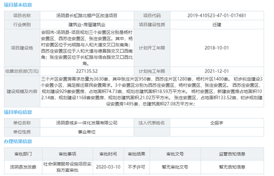 原标题:《总投资22.7亿元!安阳一安置房项目未获批,涉及三个村庄》 来源:大河报·大河财立方 大河财立方消息 3月10日,据河南省投资项目在线审批监管平台消息,汤阴县长虹路北棚户区改造项目审批结果显示“不予许可”。安阳市-汤阴县-项目规划三个安置区分别是杨村安置区、西苏庄安置区、张庄安置区。其中,杨村安置区位于光明路与人和大道交叉口东南角;西苏庄安置区位于人和大道与德昌路交叉口西南角;张庄安置区位于长虹路与信合路交叉口西北角。估算总投资227135.52万元。 ![]() 三个片区安置房需求总量为3630套,其中张庄片区950套,西苏庄片区1280套,杨村片区1400套。 初步拟定建设3个安置小区,满足搬迁居民安置需求。3个安置区分别为西苏庄安置区、杨村安置区、张庄安置区。 西苏庄安置区,规划建设929套安置房,占地面积74.73亩,规划总建筑面积18.59万平方米。 杨村安置区,新建安置房占地面积102.14亩,规划建设1168套安置房,规划总建筑面积,21.02万平方米。 张庄安置区,占地面积133.52亩,初步规划建设安置房1495套,总建筑面积27.08万平方米。 ![]() |