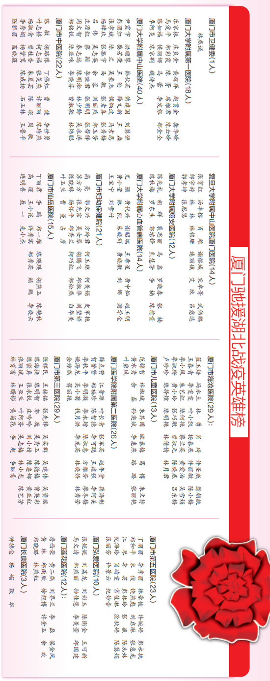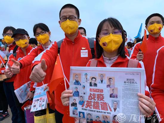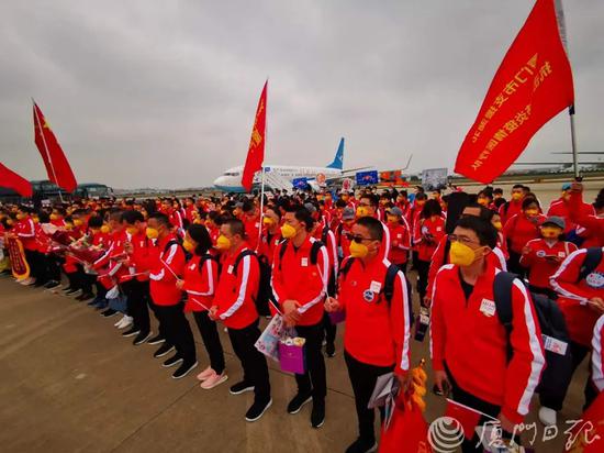 武汉春暖花开日 我们的英雄们胜利归来了 今天中午 在圆满完成支援湖北各项任务后 275名厦门支援湖北医疗队队员乘坐厦航包机 从武汉返回厦门 ![]() ![]() ![]() ![]() ![]() ![]() 省委常委、市委书记胡昌升,市长庄稼汉,厦门大学党委书记张彦,校长张荣前往机场迎接医疗队。 ![]() 胡昌升代表市委、市政府和全市人民 对医疗队凯旋表示热烈欢迎和祝贺 向医疗队致以崇高敬意和衷心感谢 他深情地说,52天前,春寒料峭,你们出征湖北,大家坚毅的眼神、铮铮的誓言、逆行的背影令人动容。52天后,满城的三角梅尽情盛开,你们如约平安归来,大家抖擞的精神、灿烂的笑容,是厦门春天最美的风景。 胡昌升表示,在湖北和武汉人民遭受疫情打击的危急关头,你们不惧艰险、主动请缨,白衣执甲、逆向而行,勇敢地奔赴武汉抗疫最前沿,以顽强的作风、精湛的医术和极端负责的态度,全力以赴抢救患者,为夺取武汉保卫战、湖北保卫战的压倒性胜利贡献了厦门智慧和力量。你们在“打胜仗”的同时,成功实现了“零感染”,“一个不少”地平安回家。你们不愧是国家的英雄,是新时代最可爱的人。市委、市政府和全市人民为你们骄傲,向你们致敬。 市领导黄强、黄文辉、李辉跃、国桂荣一同到机场迎接。 最高礼遇 “过水门”为医疗队接风洗尘 为了迎接英雄凯旋 厦门高崎机场特意安排了“水门礼” ![]() ![]() 在民航界中,飞机“过水门”仪式,类似军队列队红毯两侧的仪仗兵用军刀搭建的“门”,寓意“接风洗尘”,被称为民航界最高的礼仪级别。 ![]() 厦门医疗二队队员将全体签名的防护服赠送给机组人员 “各位旅客你们好,我是本次航班的机长,本次航班由武汉飞回厦门。我们如约来接你们了,定把你们一个不少地安全带回家!”在运输厦门第三批医疗队的包机航班上,厦航机长通过客舱广播向医疗队员致敬。同时,厦航还为队员们准备了“最美逆行者”徽章。领队代表队员接受了厦航赠送的白鹭驰援卡、尊医卡和花束。 市公安局交警支队19名交警骑警队员 在机场门口整装列队 为英雄车队开道护送 以最崇高的敬意将他们送至定点隔离酒店 ![]() ![]() ![]() ![]() 此前 已有两批27名厦门医护人员 先后随队返闽 请记住这302位英雄们的名字 ↓↓↓ ![]() ![]() ![]() 《厦门日报》致敬英雄特刊《战疫英雄谱》送到了刚下飞机的英雄们手中 最艰巨的疫情防控阻击战 取得了阶段性的重大胜利 ![]() ![]() 昨天,厦门医疗一队和二队接管的病区均实现患者人数“清零”。 白衣战士们兑现了他们战前的承诺 守护荆楚大地的人民 平安度过最危险最艰难的时期 ![]() ![]() 上午,在医疗队驻地举办了欢送仪式 ![]() 厦门医疗队离开驻地的大巴车外,武汉市民手举小红旗欢送他们 ![]() 武汉机场工作人员们夹道欢送医疗队员,不停地道着感谢。 ![]() 武汉机场还为医护人员送上了一张“特殊”的机票。这是医疗队队员们别样的军功章,与武汉共同战斗的日子,将成为他们人生中熠熠生辉的一段经历。 ![]() ![]() 队员们在武汉机场合影 “疫”线战令,使命必达 ![]() 厦门医疗一队队员合影 ![]() 厦门医疗二队队员合影 还记得吗↓↓ ![]() 2月9日,厦门高崎机场,264名白衣战士带着使命,带着责任,踏上开往武汉的专机,以英雄之姿,驰援英雄之城。 ![]() 2月13日,我市紧急派组6名医护人员,再次增援湖北武汉; ![]() 2月20日,我市临时派组5名医护人员,增援我市第三批支援湖北医疗队…… 在湖北,在武汉 在战疫的主战场 275名白衣战士们分为两队 深入华中科技大学同济医学院 附属同济医院光谷院区 走进E3-10楼、E3-9楼重症隔离病房 竭尽全力与时间赛跑,与病魔较量 ![]() ![]() 厦门医疗队队员在工作中 前线奋战52天 厦门医疗队以实际行动 践行了医务工作者的责任和担当 以最美逆行守护了渴望新生的武汉人民 ![]() 厦门医疗队一队队员用胳膊为转病区的患者遮风挡雨 同时,还以“出院患者零复阳返院、医疗护理零差错、医护人员零感染”的佳绩交出了战疫任务的完美答卷,“掏空家底式”救援赢得了湖北人民的点赞和感谢。 ![]() 3月25日,厦门医疗队二队收到武汉市青山区红钢城小学的学生们写来的感谢信和138件由武汉不同小学的小学生们涂鸦的文化衫。 临行前 华中科技大学同济医学院 附属同济医院光谷院区 为厦门医疗队送上感谢信 并为队员们发放表彰证书 ![]() “情深谊厚,山高水长!武汉永远欢迎您!同济永远欢迎您!”华中科技大学同济医学院附属同济医院光谷院区特意为厦门医疗队队员制作了纪念工牌、抗疫纪念证书等。纪念工牌上还写着“纪念一起在同济医院拼过命”。 “感谢你们的英勇无畏和挺身而出。”同济医院光谷院区院长刘继红表示,正值武汉疫情最严重之时,厦门市支援湖北医疗队白衣执甲、逆行出征,奔赴武汉市开展医疗救援工作。你们是最美“逆行者”,是2020年降临武汉最美的人!” 战绩赫赫 52个日夜治愈224名患者 275名队员零感染 截止到3月31日,厦门医疗队自2月10日接管同济医院光谷院区2个病区在“疫”线奋战了52个日夜,共累计管理患者248人,治愈出院224人,交出一份病区零投诉、队员零感染的“完美答卷”,用专业精神和艰辛付出,打响抗击疫情的“硬核”战役。相关医疗救治工作情况多次得到国家卫健委认可。 值得一提的是,世界卫生组织(WHO)总干事高级顾问布鲁斯。艾尔